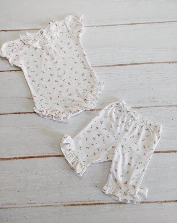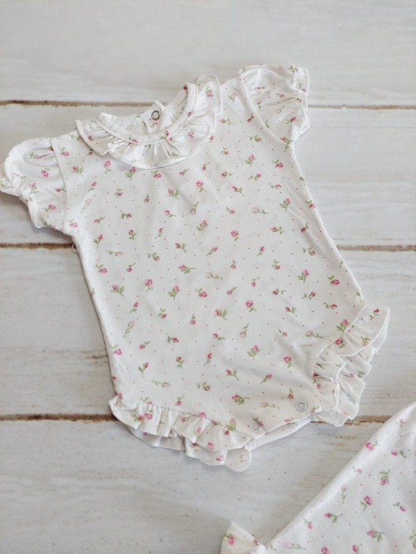 Conjunto body y pantalon blanco con flores CocoMiel 0/3 meses