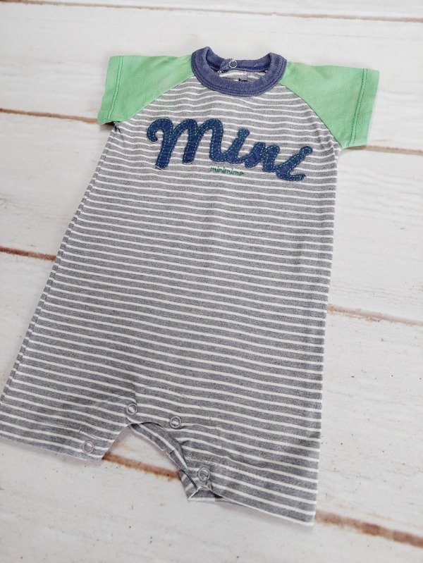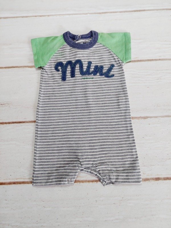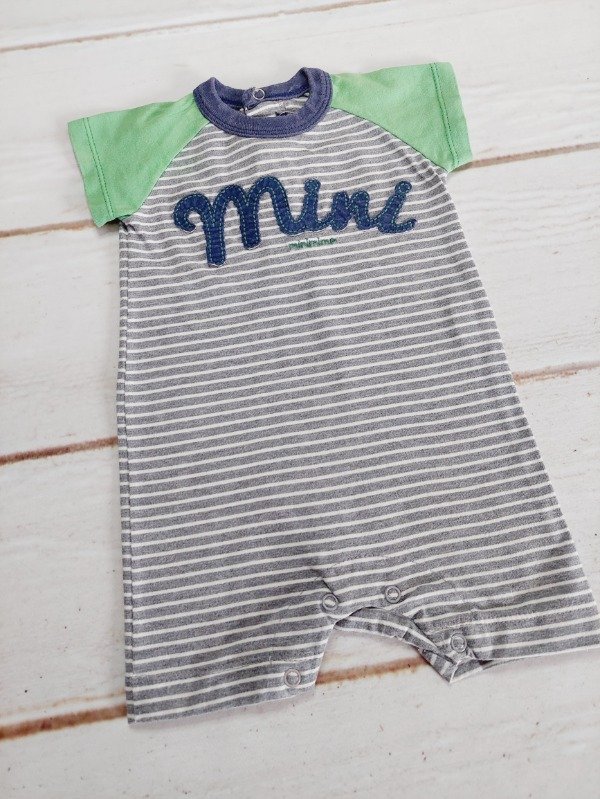 Romper gris a rayas con mangas verdes Mimo 0/3 meses