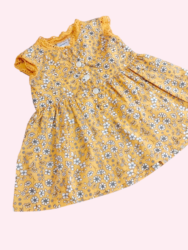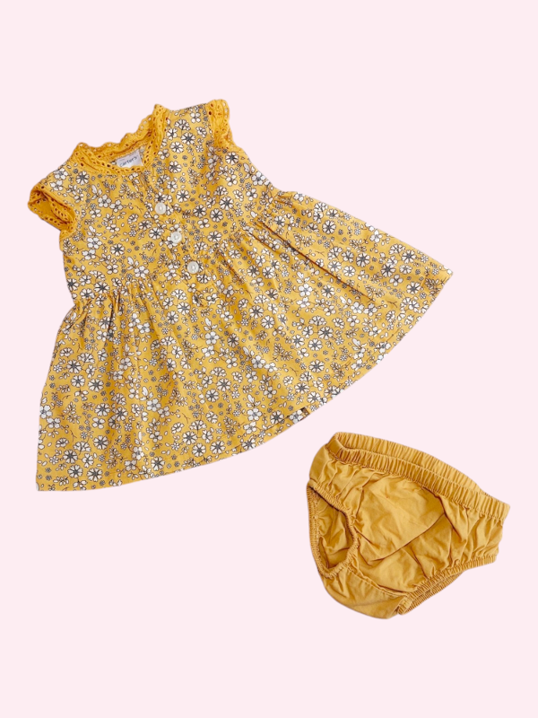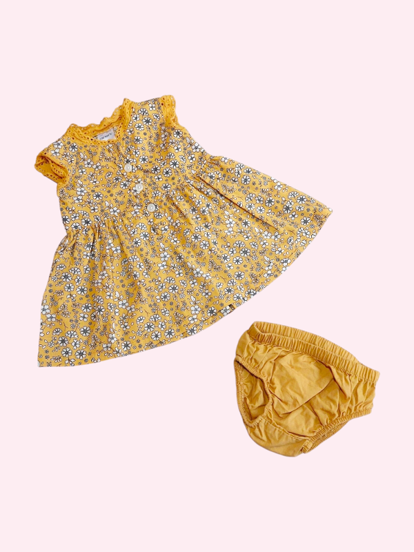 Vestido sin mangas mostaza con florcitas y bombachudo Carters NB