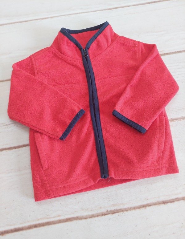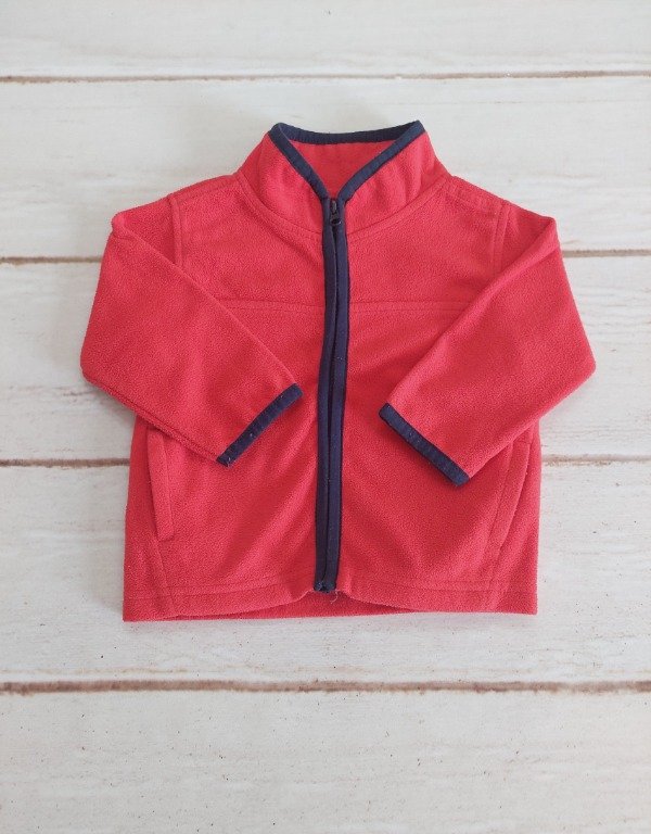 Campera micropolar roja con cierre y bordes en azul Oshkosh 12 meses