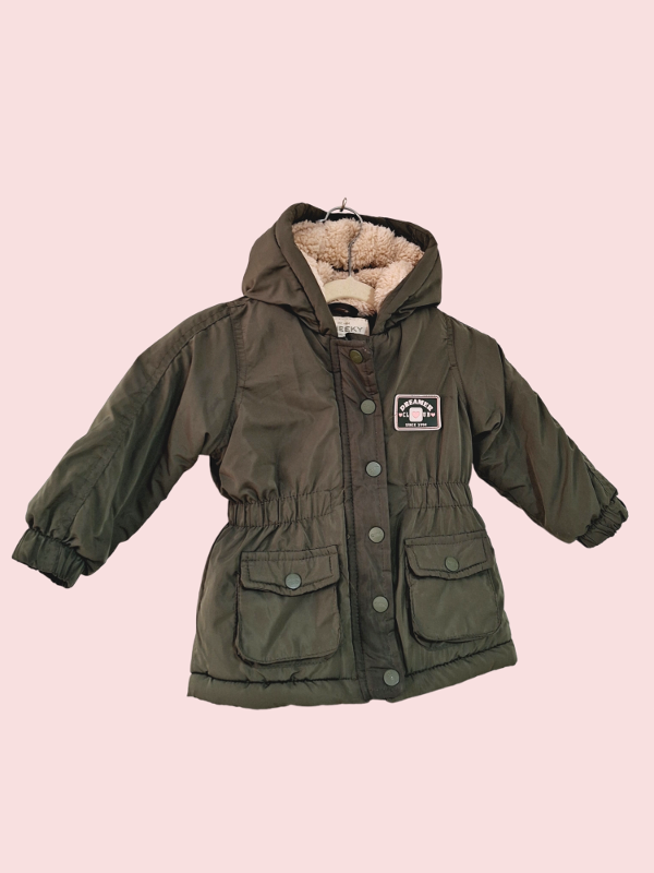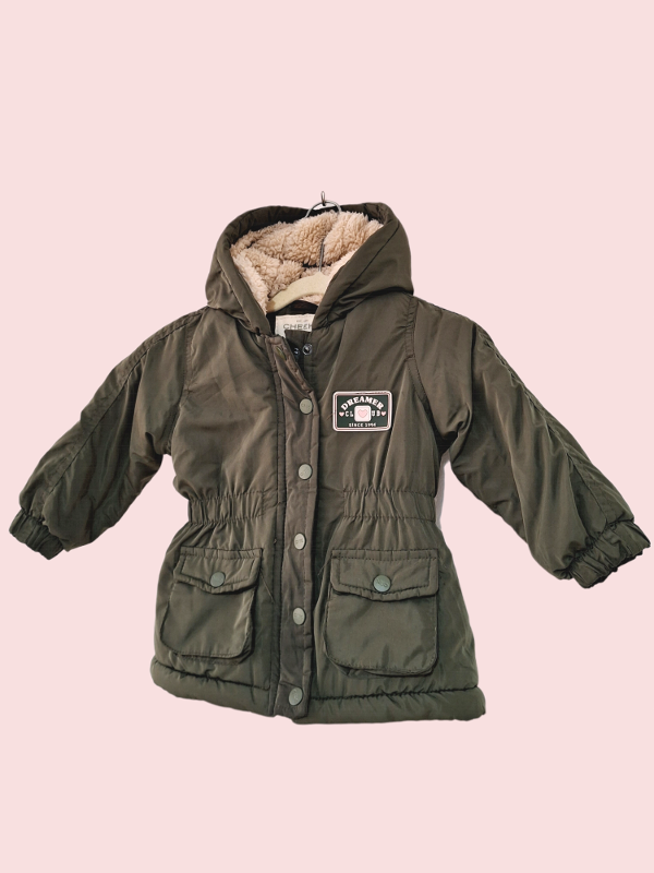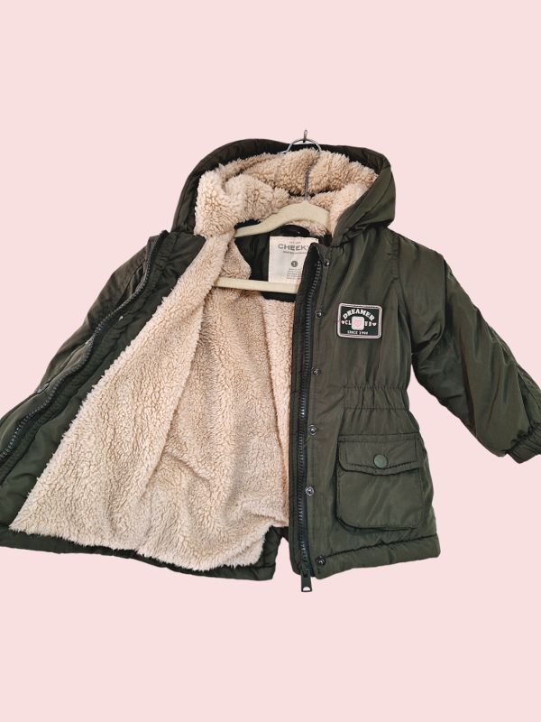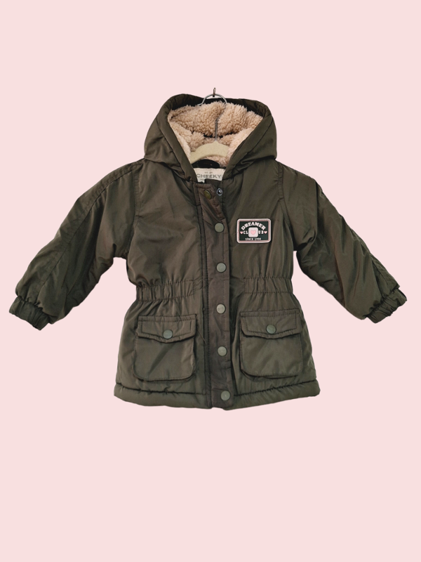 Campera verde con detalle en rosa forrada en corderito Cheeky 12/18 meses