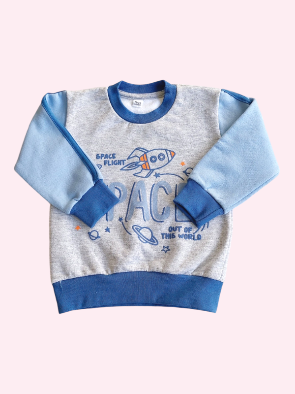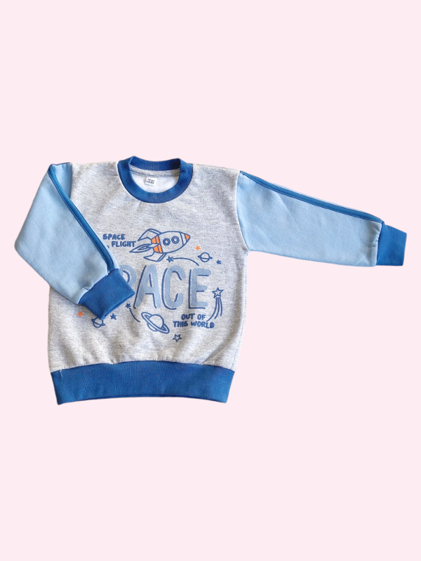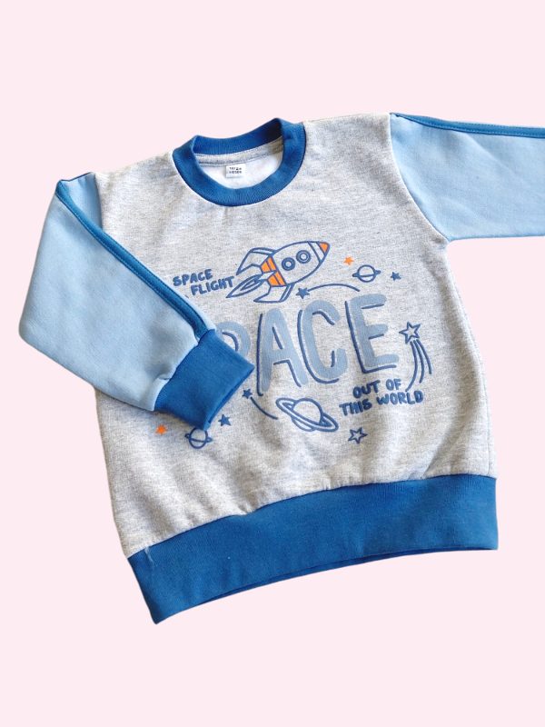 Buzo frizado gris con mangas celestes Space 18/24 meses