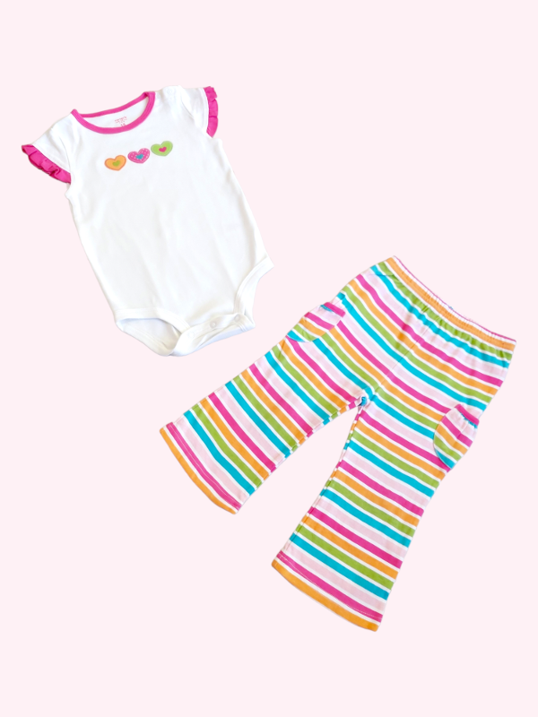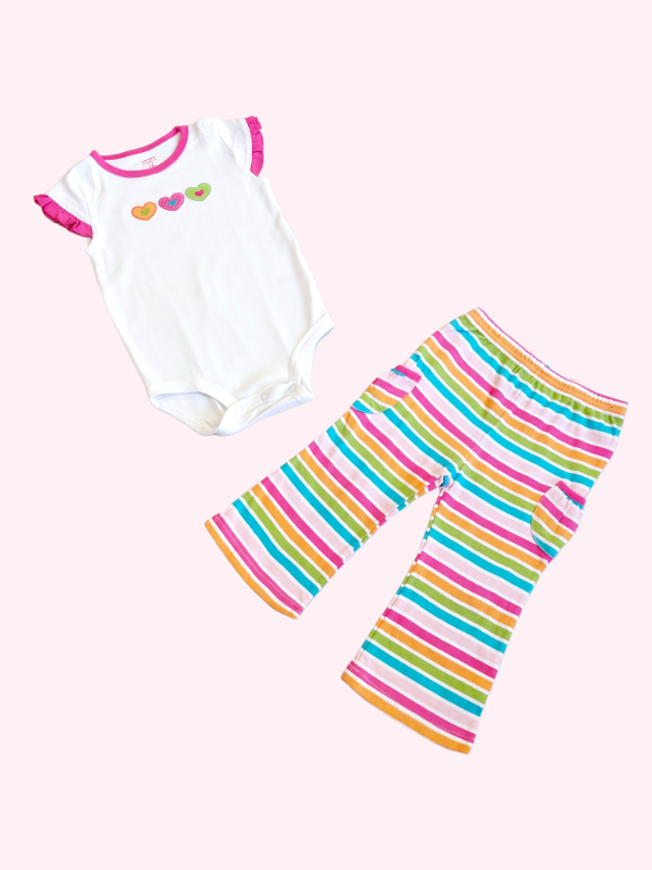 Conjunto body y calza corazones y rayas de colores Carters 18 meses