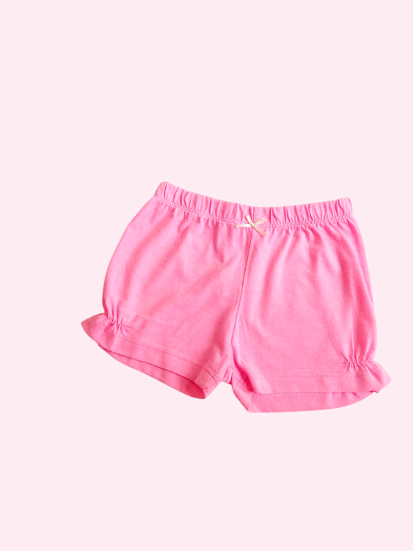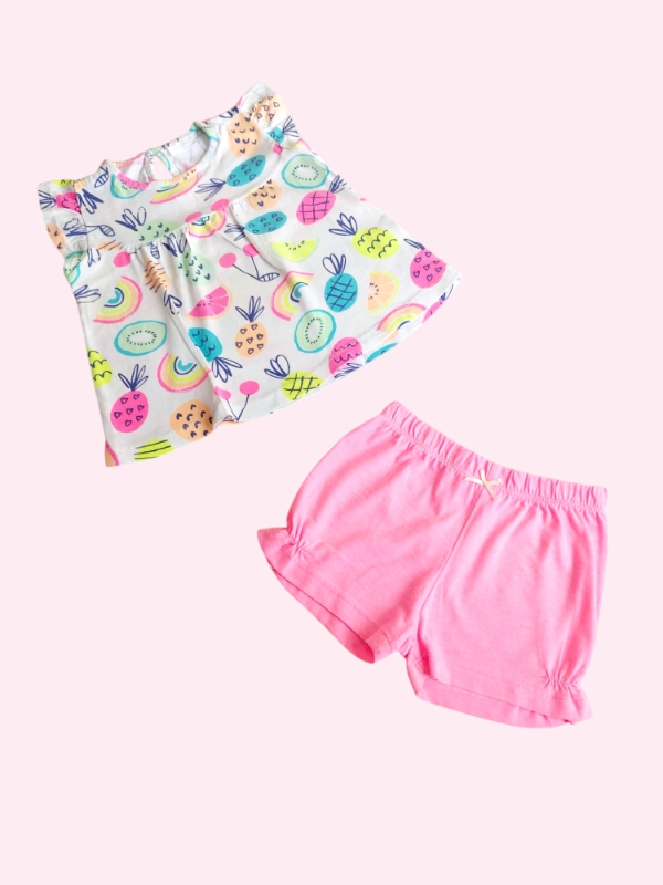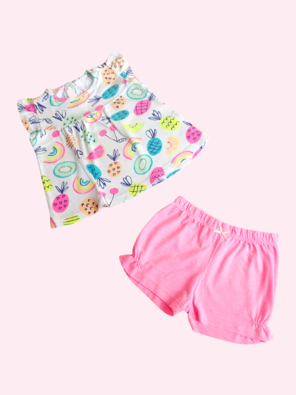 Conjunto remera blanca y dibujos y short rosa Mimo 18/24 meses