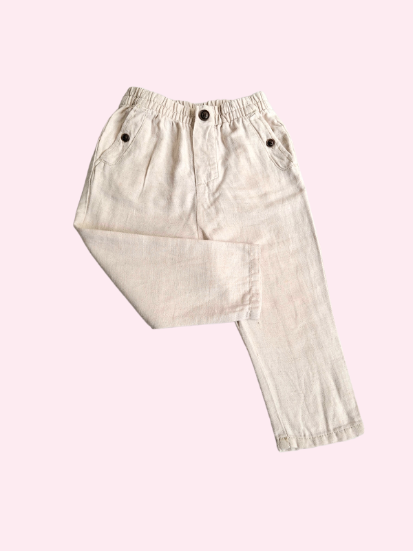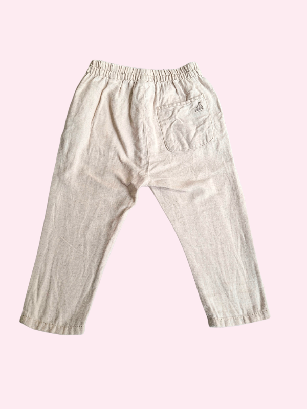 Pantalón de lino beige con cintura elástica Zara 18/24 meses