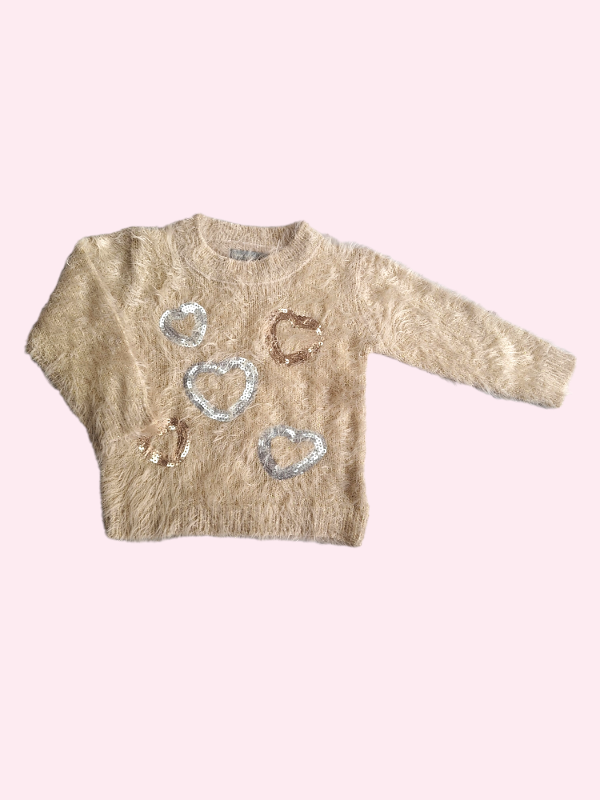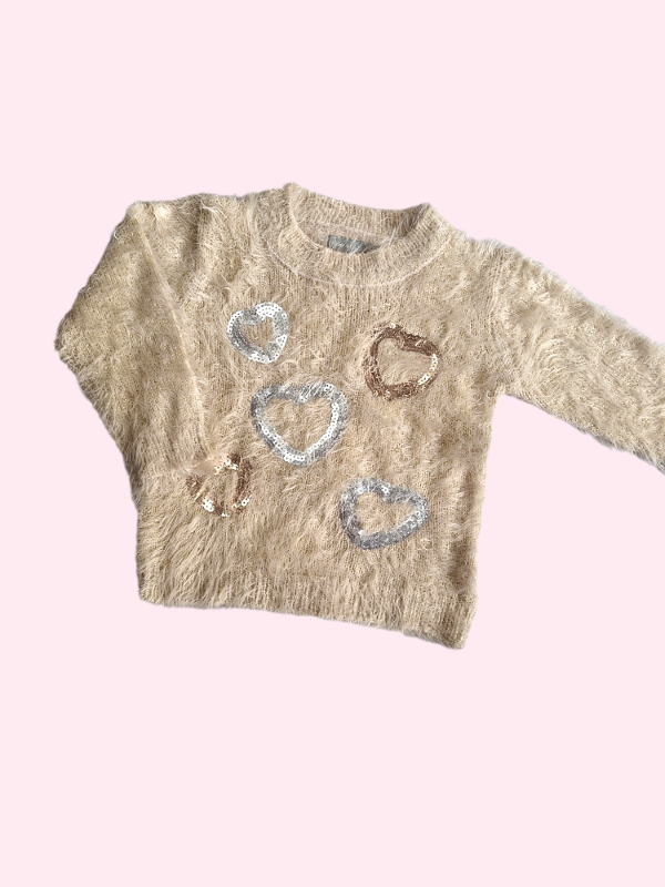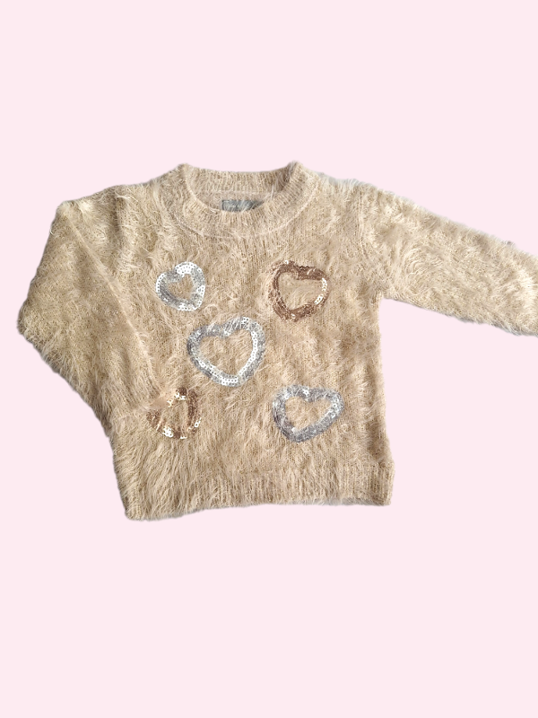 Sweater pelo largo crema con corazones Mimo 18 meses