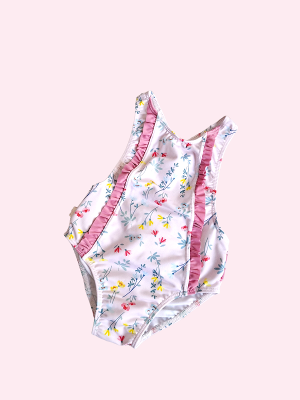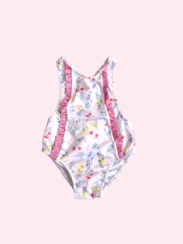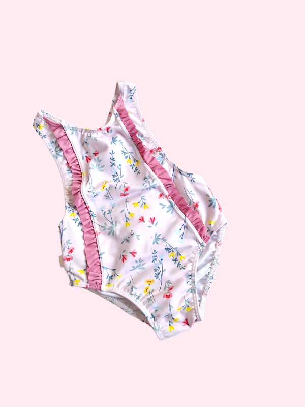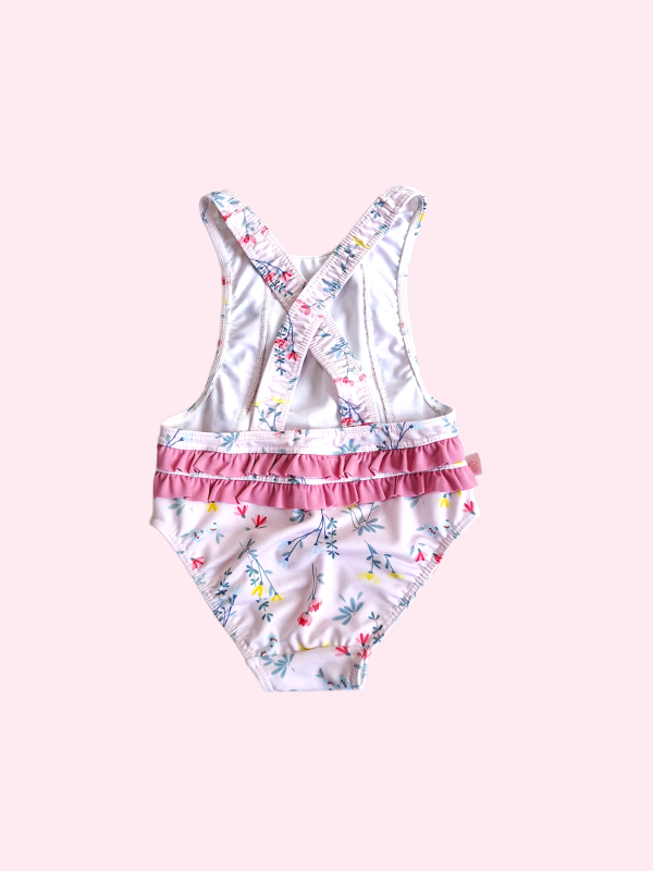 Traje de baño rosa con flores y volados Caracoles 18 meses