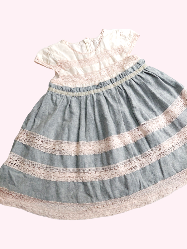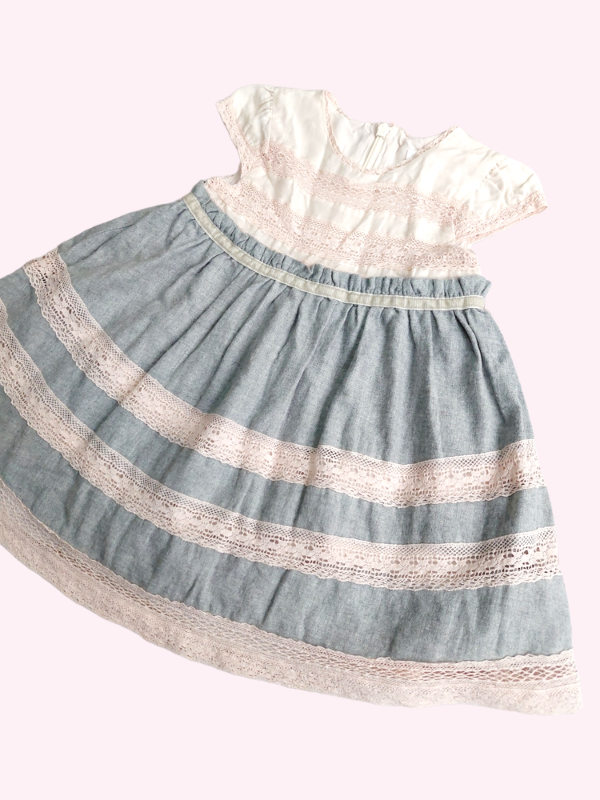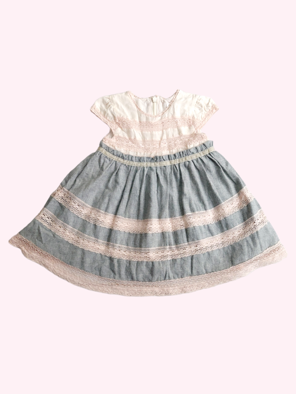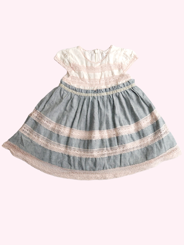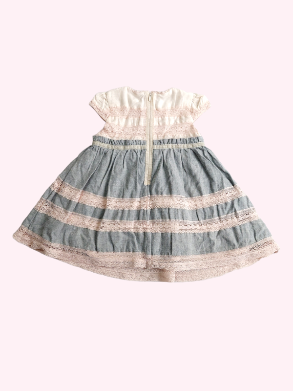 Vestido manga corta gris y rosa con puntillas Bass 18/24 meses