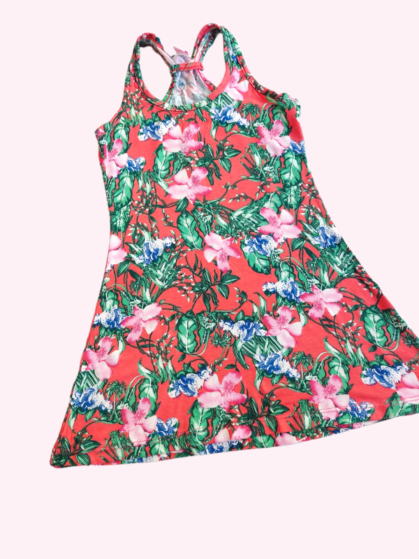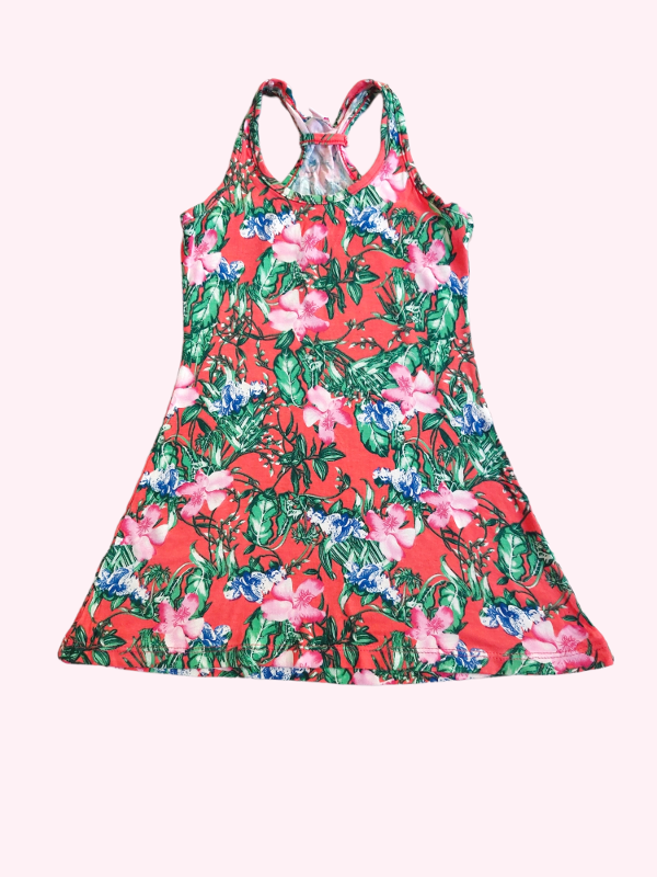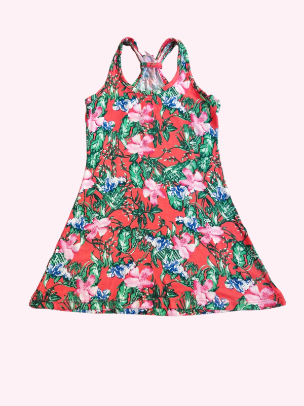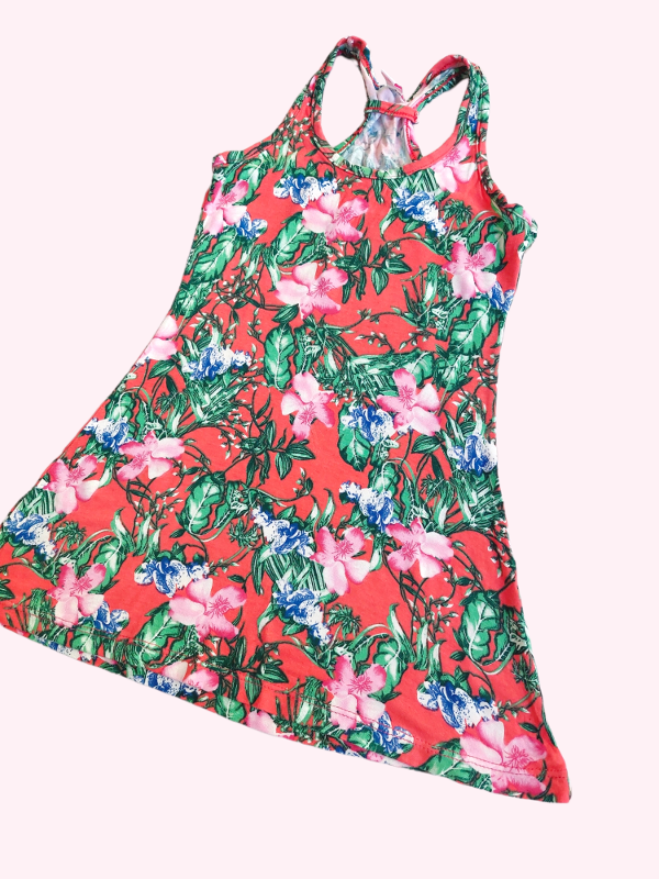 Vestido modal rojo y flores rosas/verdes Joselin 18/24 meses