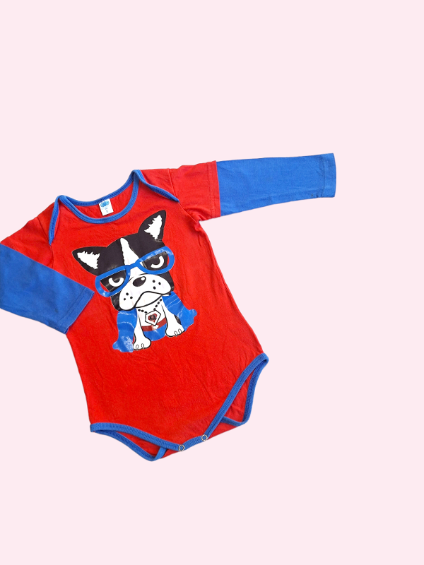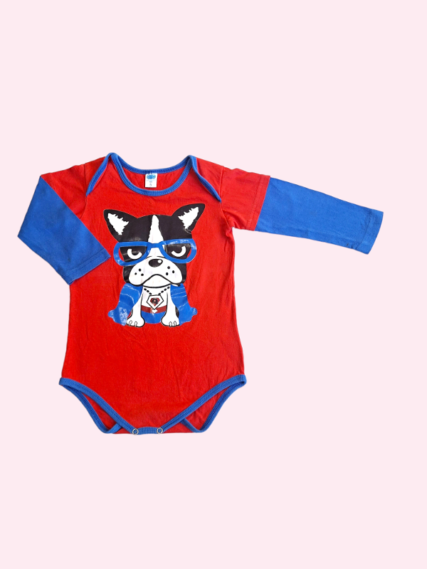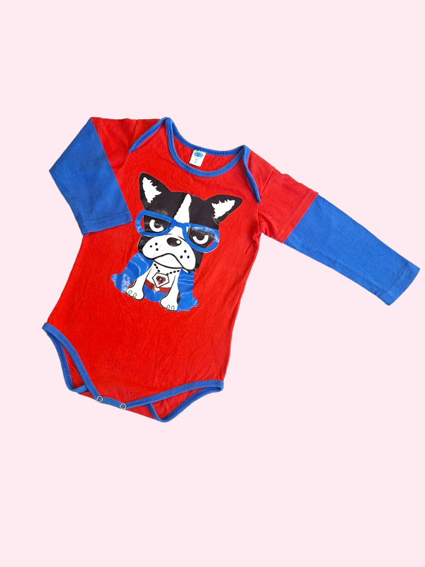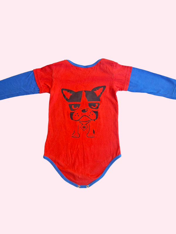 Body manga larga azul y rojo con estampa perro Quo 2 años