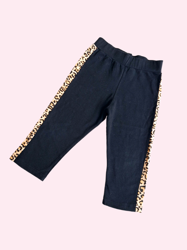 Calza negra de algodón con lateral animal print Wanama 2 años