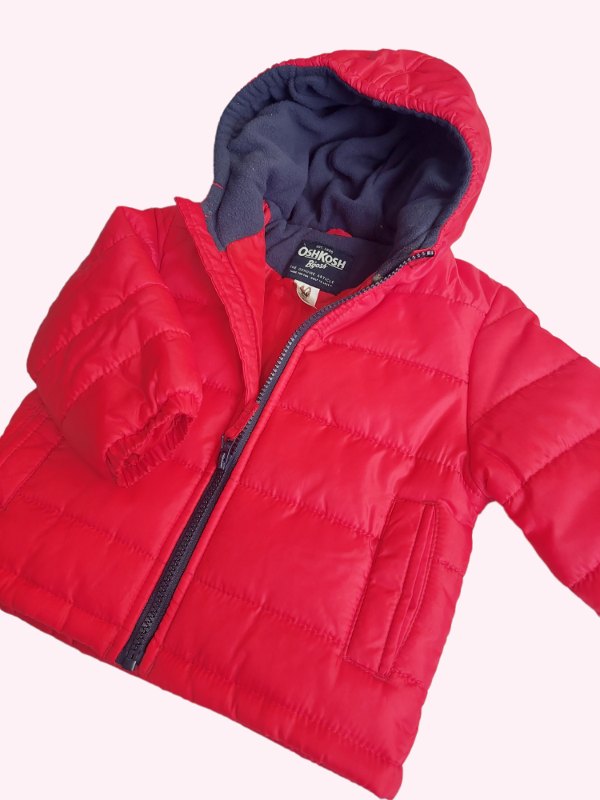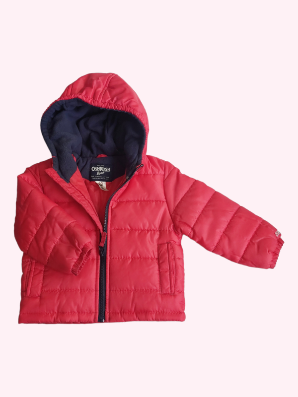 Campera de abrigo roja con capucha en polar azul Oshkosh 24 meses