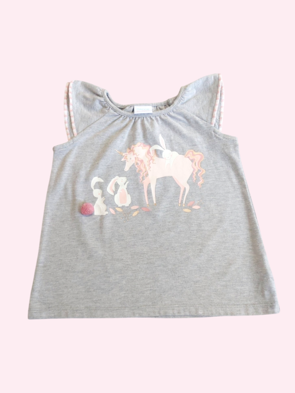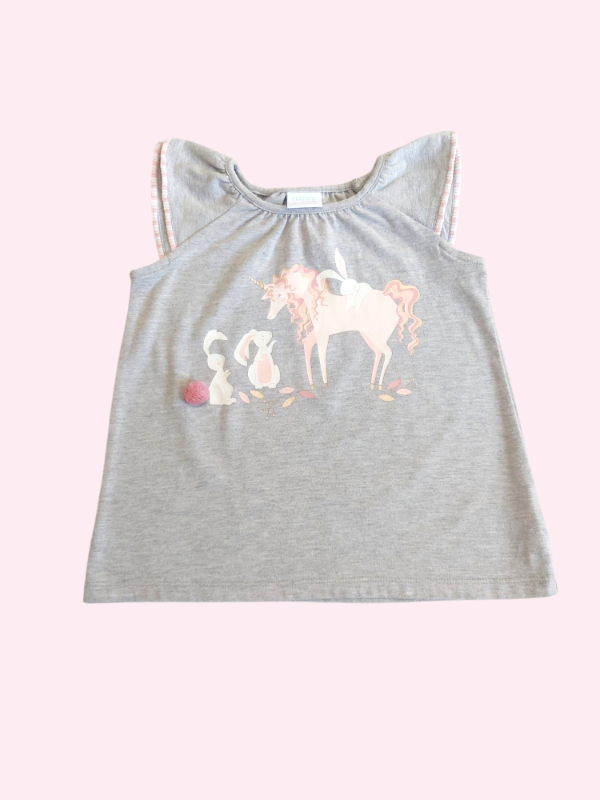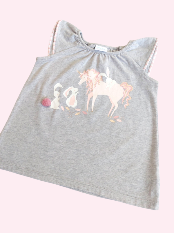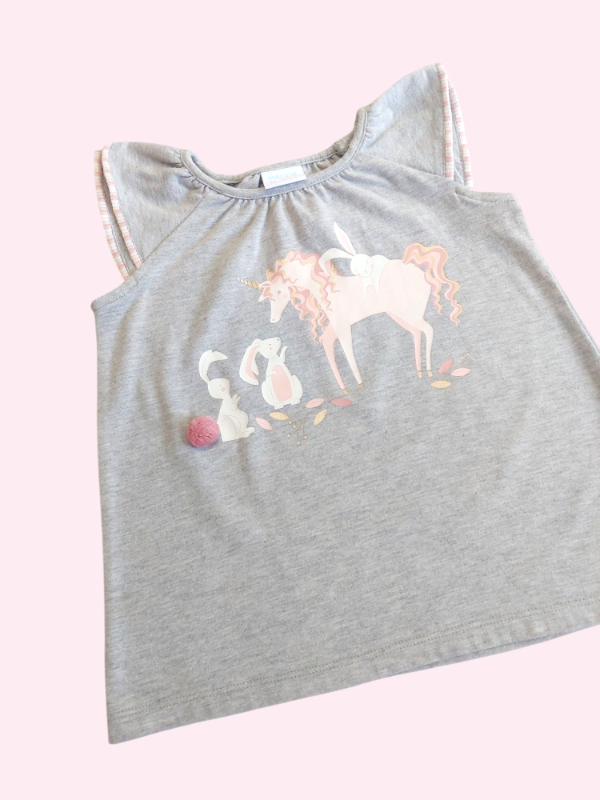 Remera con manguitas gris melange con rosa y unicornio Maggie 2/3 años