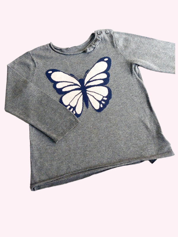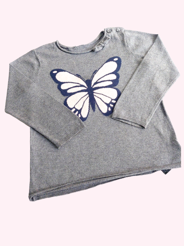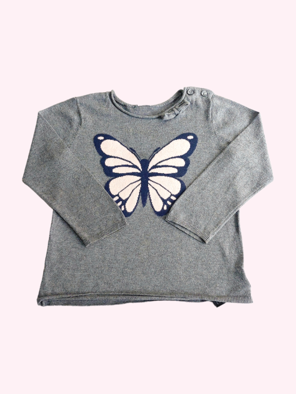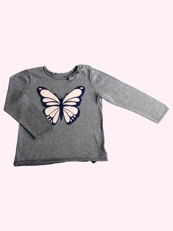 Sweater liviano gris con mariposa rosa HYM 2 años