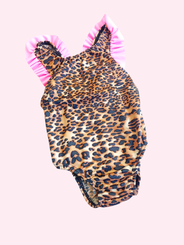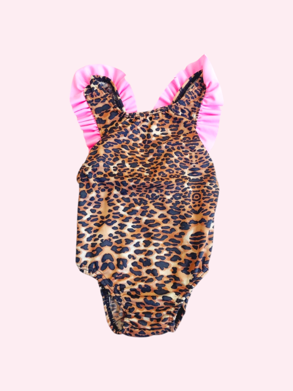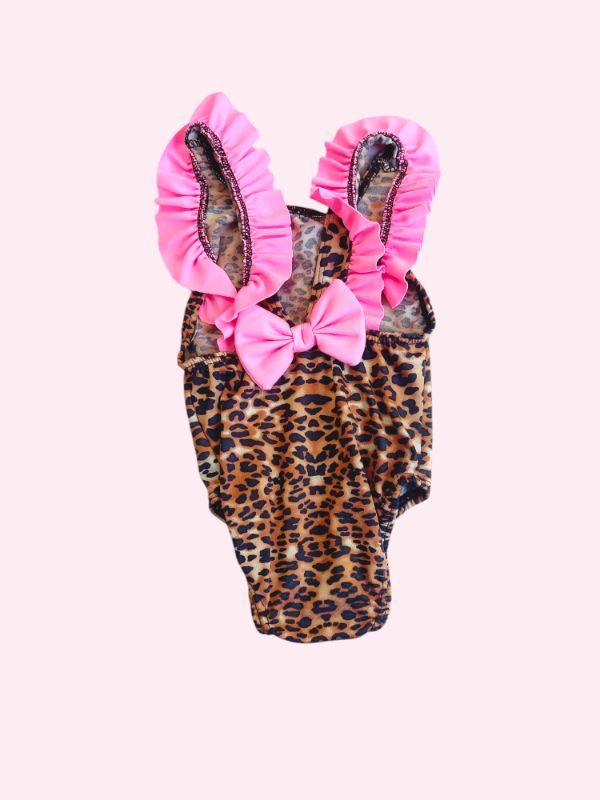 Traje de baño animal print con volado y moño fucsia Little Pop 2/3 años
