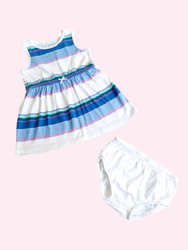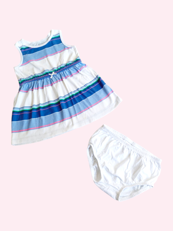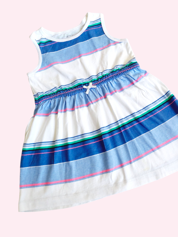 Vestido sin mangas de algodón rayado blanco y celeste Carters 24 meses