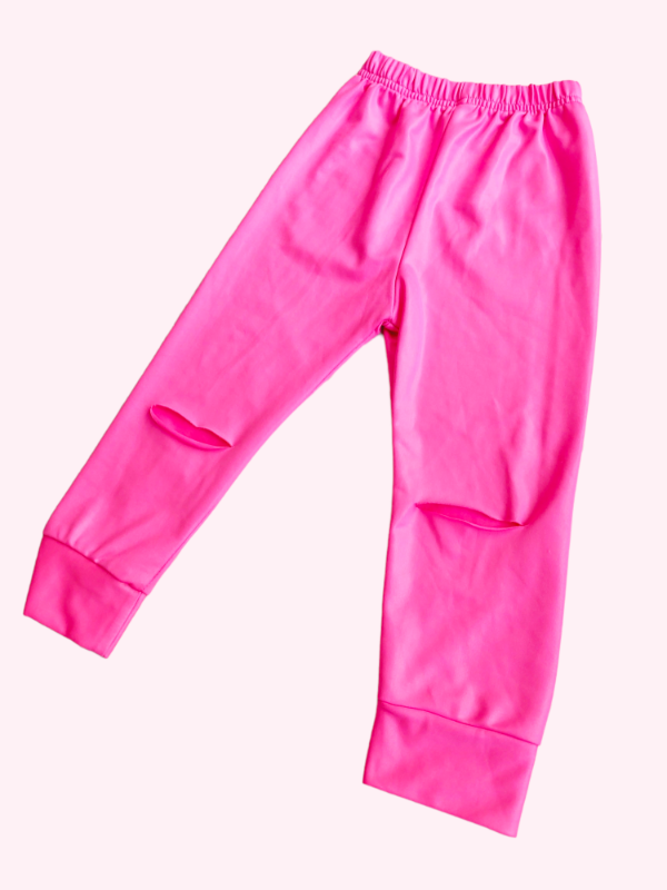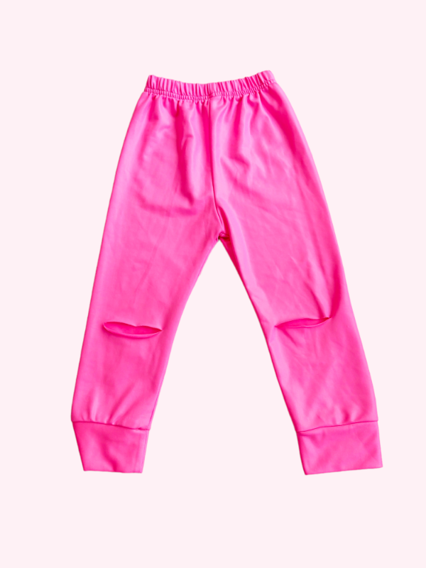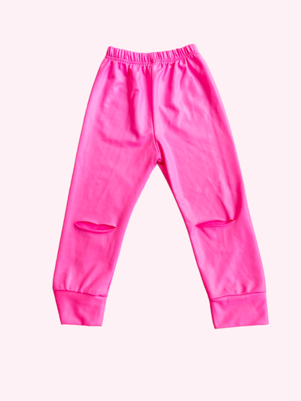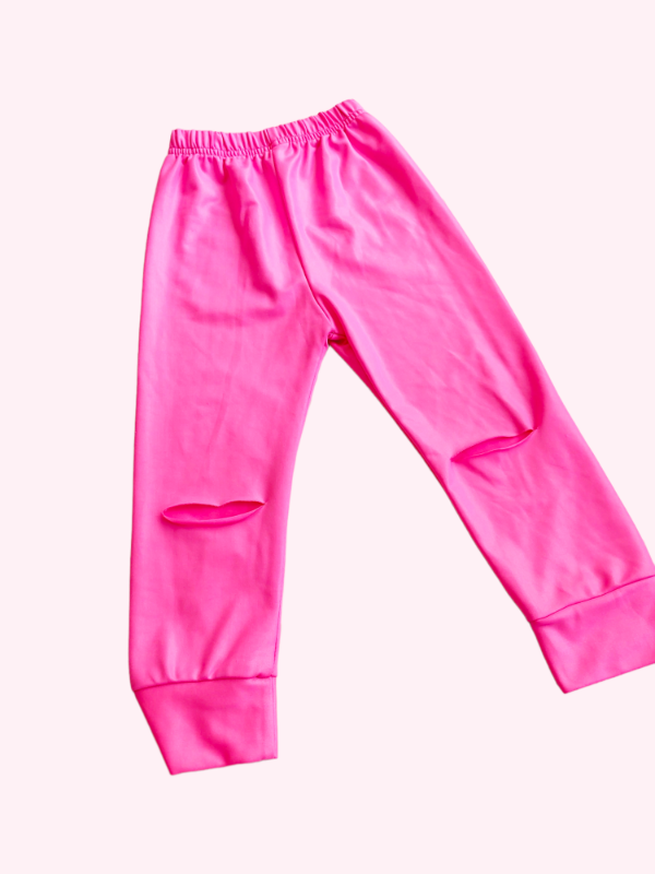 Calza lycra con roturas en rodiilas rosas chicle 4 años