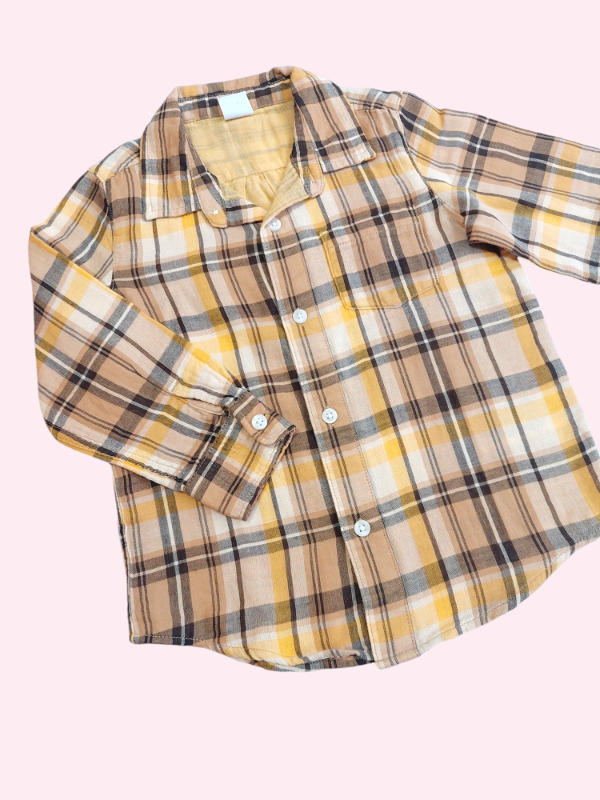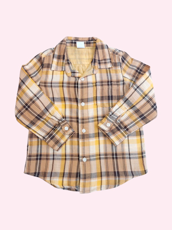 Camisa manga larga cuadrille marron y amarillo GAP 3 años