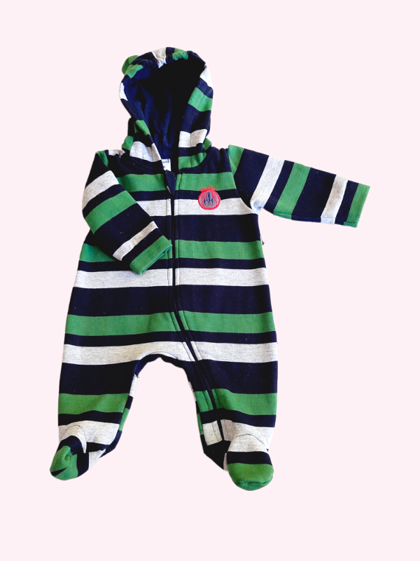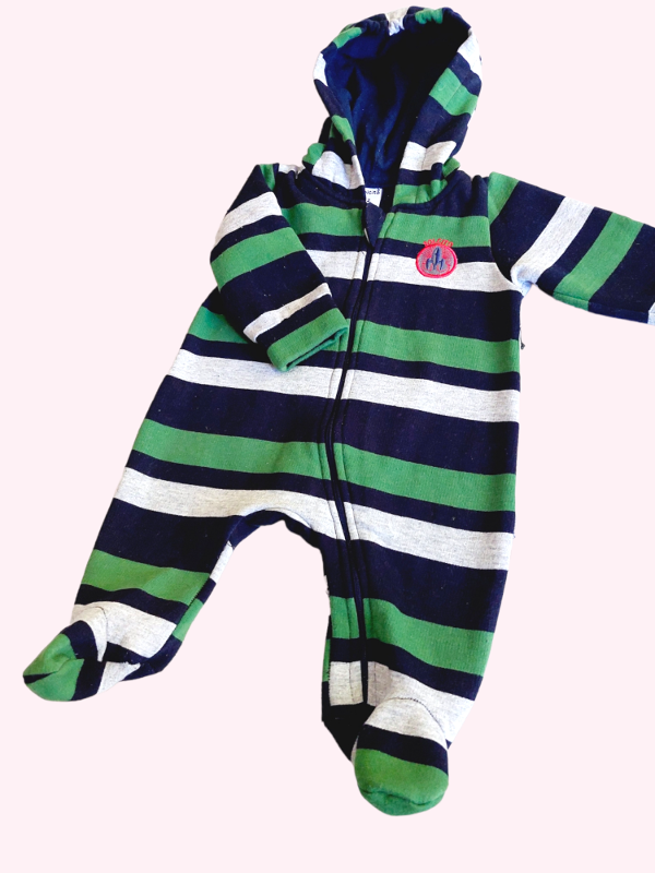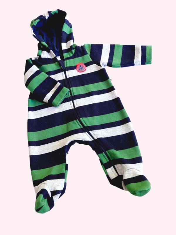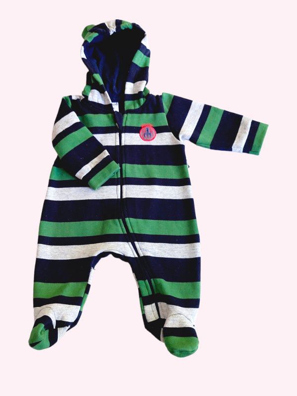 Astronauta de algodón rayado verde azul y gris Solcito 3/6 meses