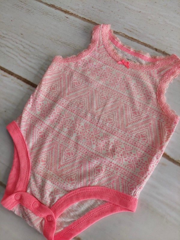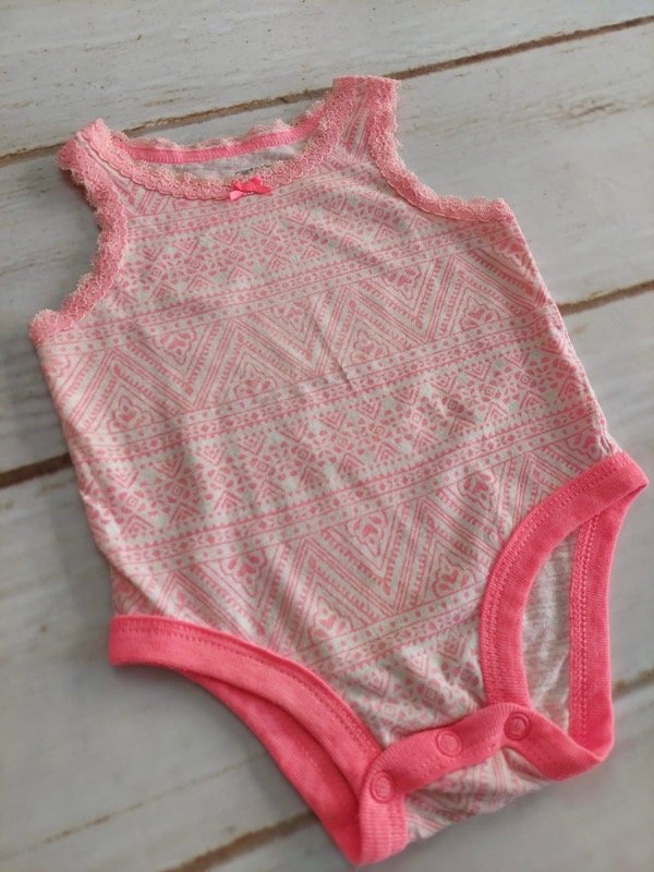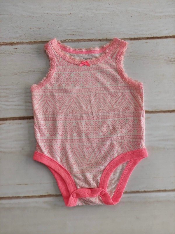 Body blanco con dibujos y bordes rosas sin mangas Carters 3 meses