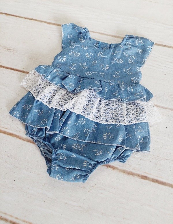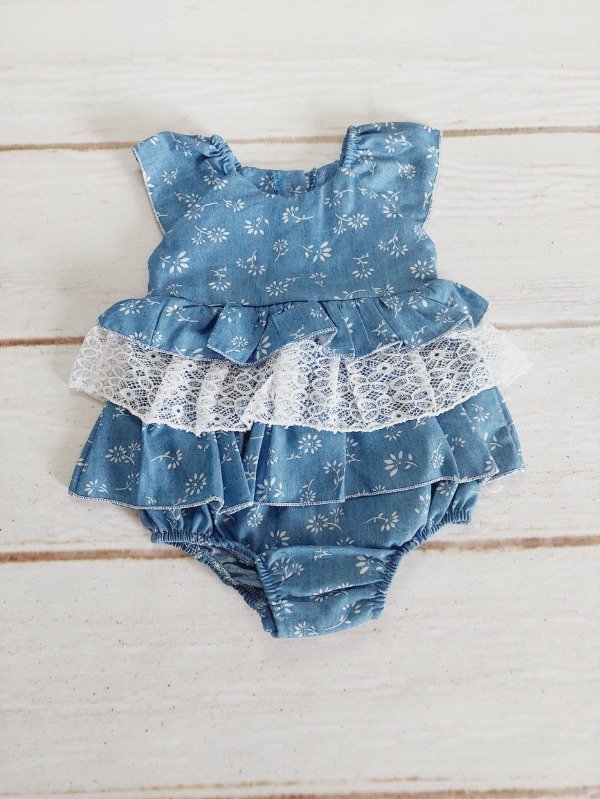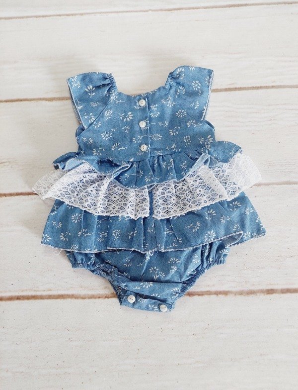 Body estilo jean con flores blancas y volados Coco Miel 3 meses