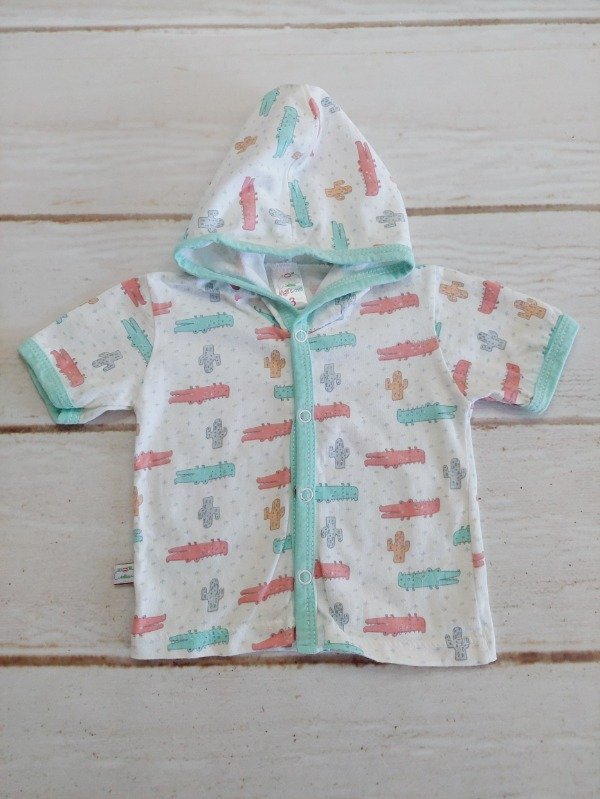 Camperita de algodón blanca y tuquesa con dibujitos AngelsLove 3 meses