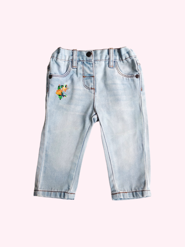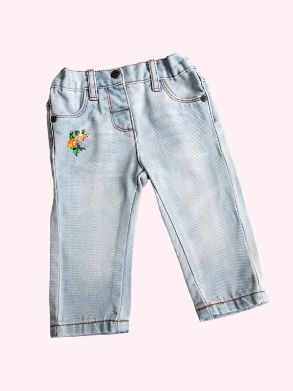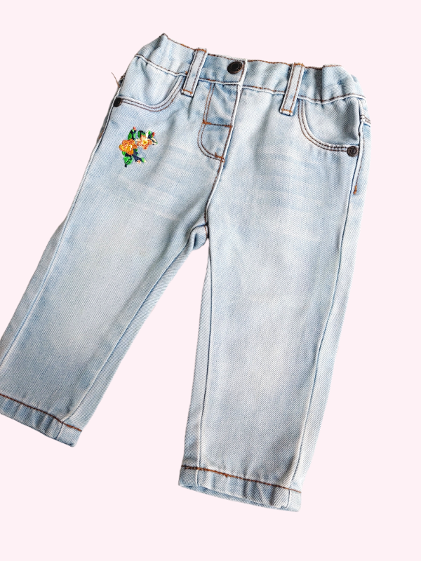 Jean claro con flores bordadas Mon Caramel 3/6 meses