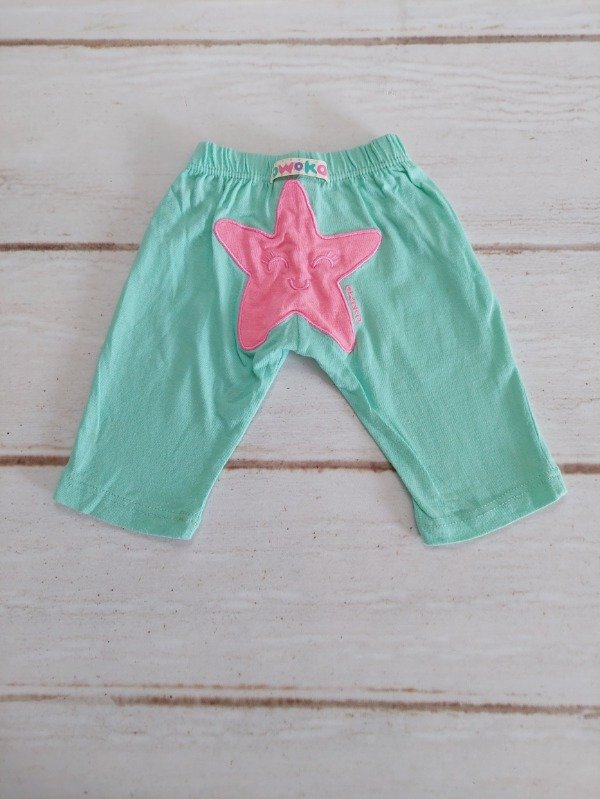 Pantalón verde con estrella fucsia en la parte de atrás Owoko 3/6 meses