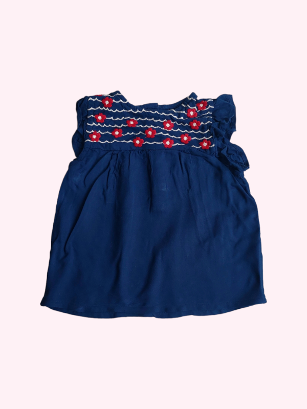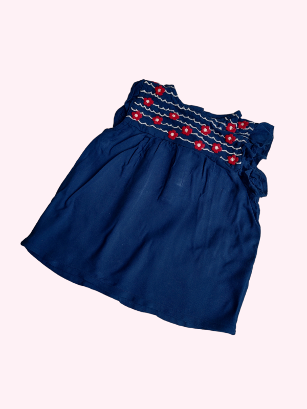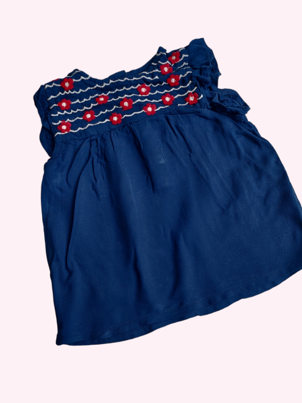 Remera azul oscuro con flores rojas bordadas CYA 3/6 meses