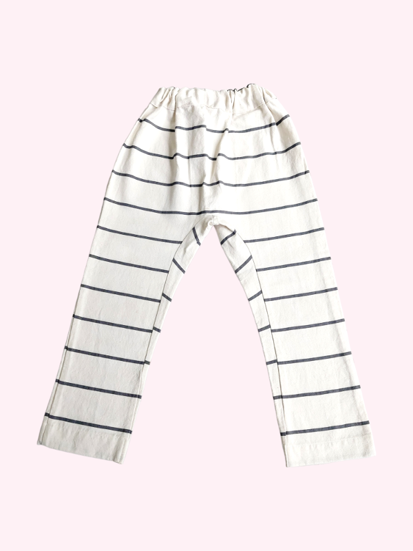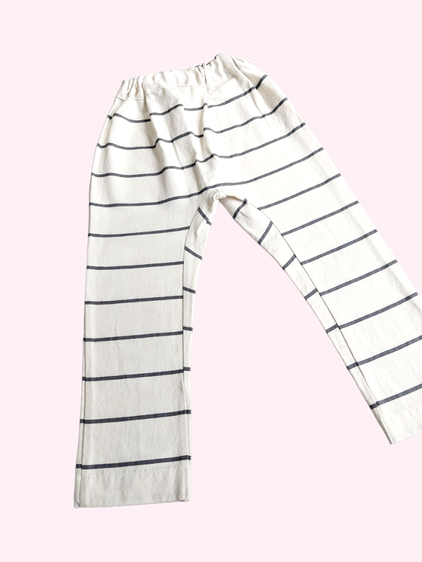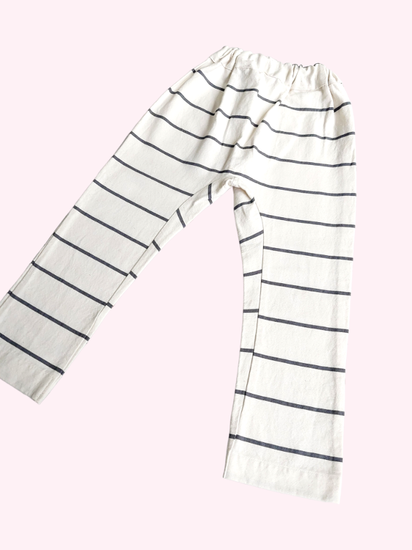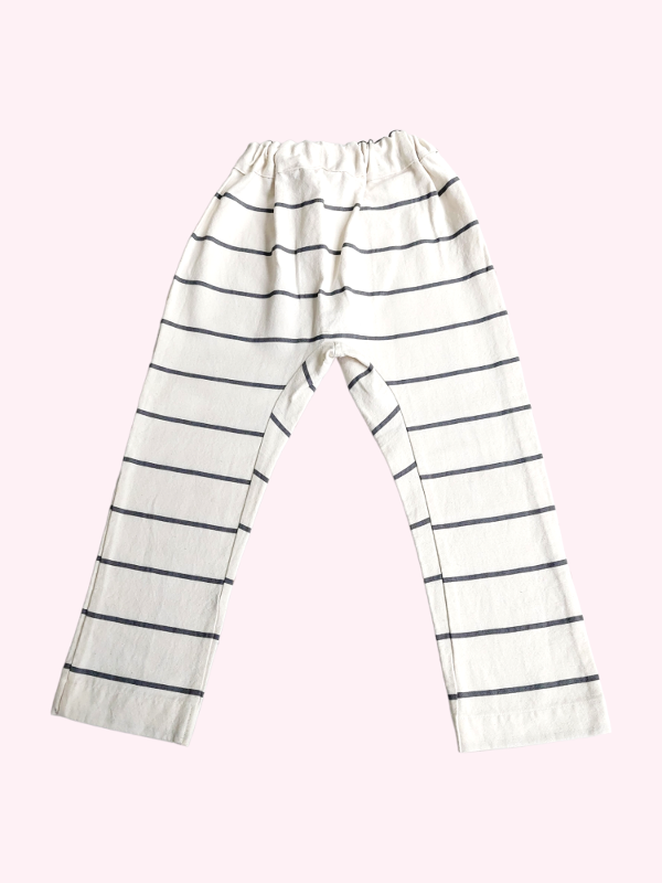 Pantalón de lino crema con rayas grises y cintura elástica Mini Pupe 4 años