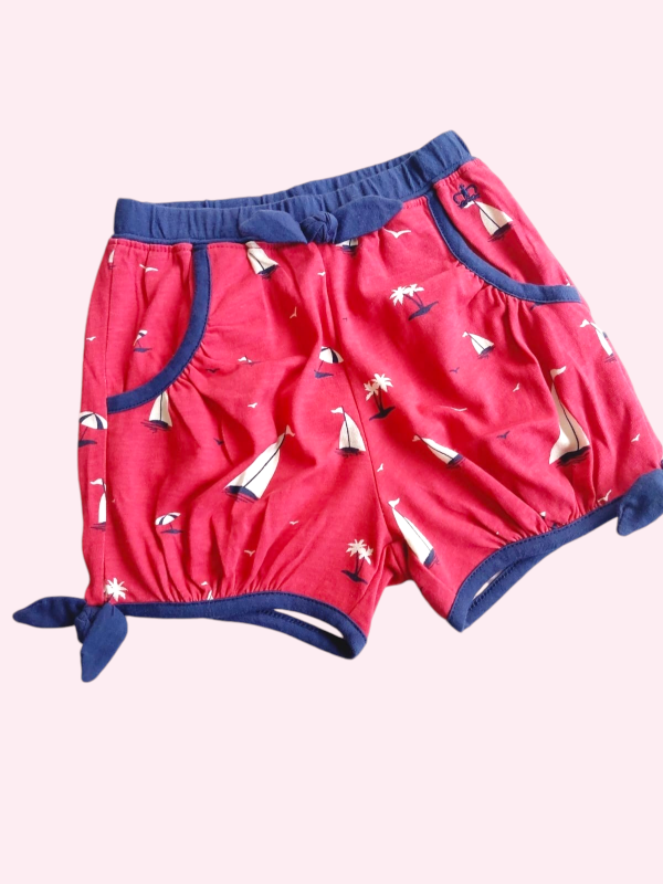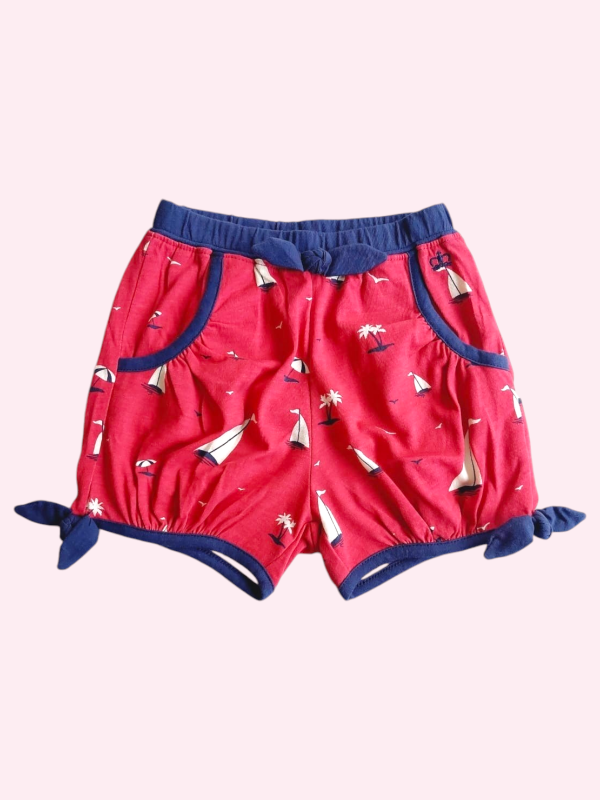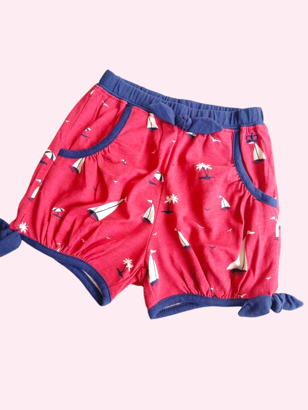 Short de algodón bordó y azul con veleros Paula 4 años
