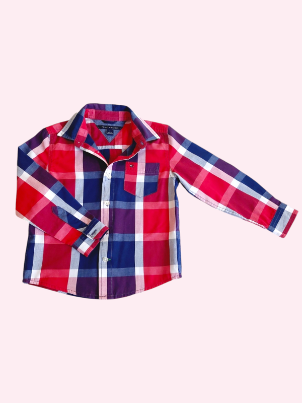 Camisa manga larga cuadrille roja y azul Tommy 5 años