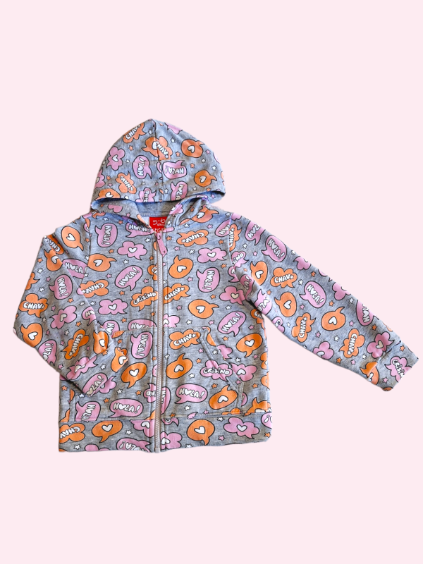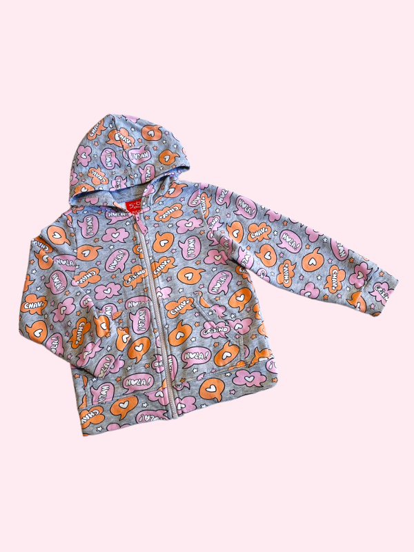 Camperita de algodón con capucha gris con corazones Grisino 5/6 años