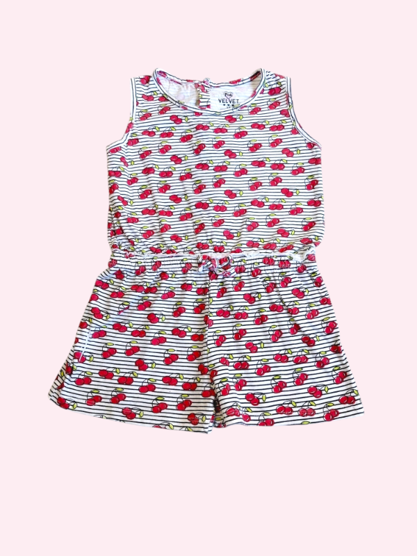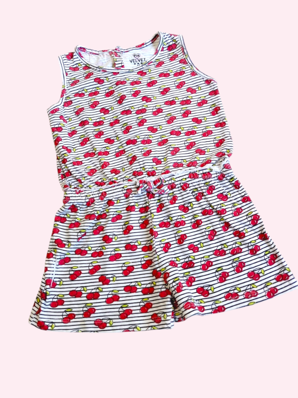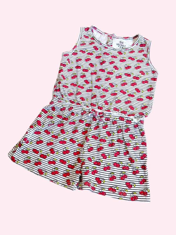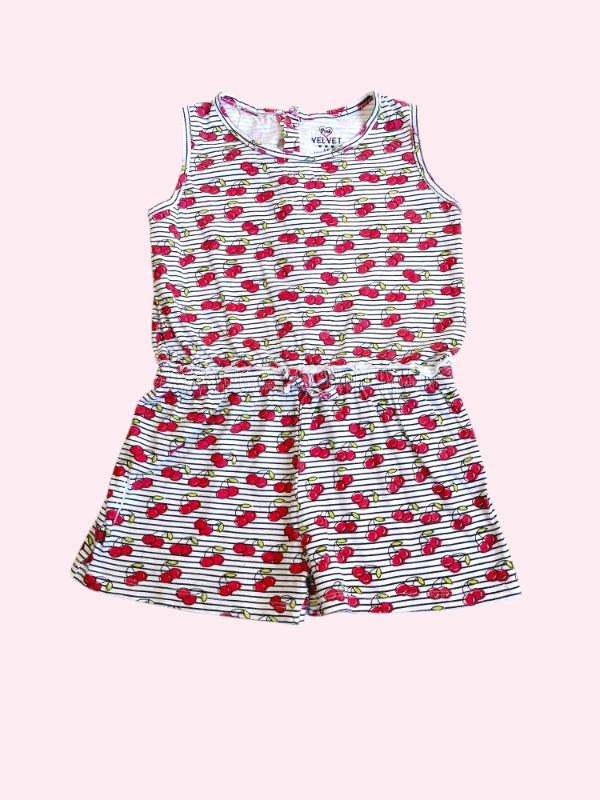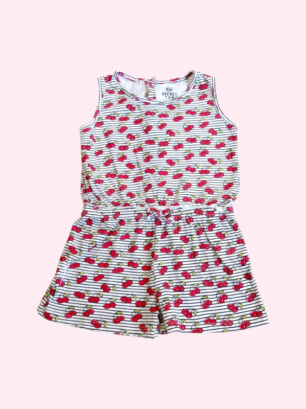 Mono de algodón blanco con rayas y cerezas Velvet 5/6 años