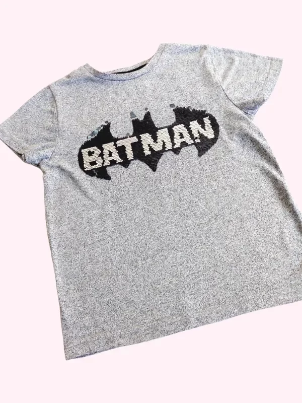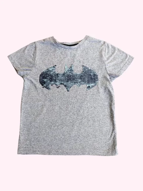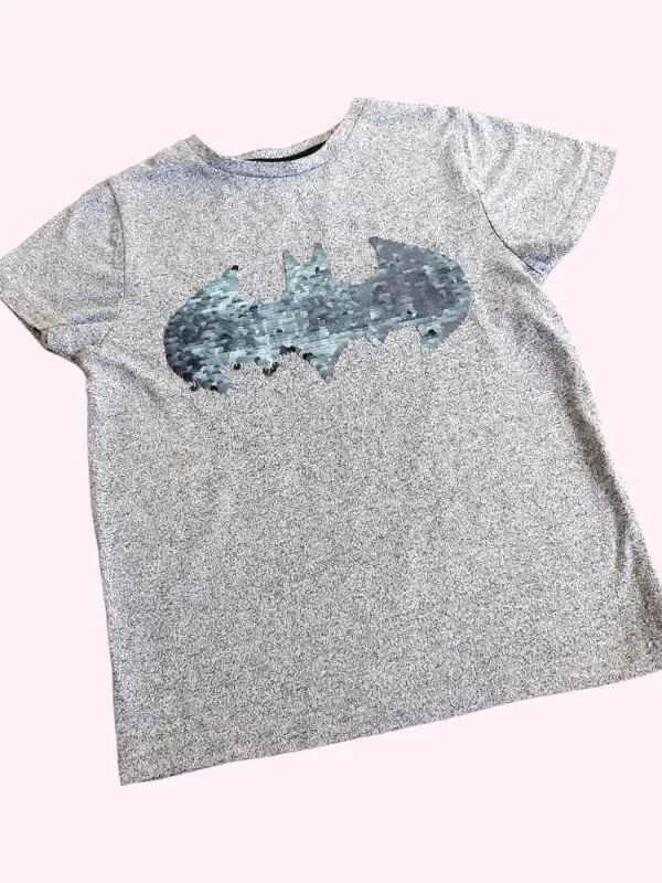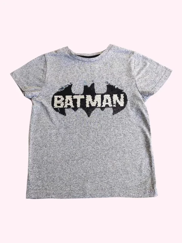 Remera manga cota gris con lentejuelas Batman 5/6 años