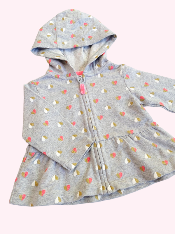 Camperita gris con corazones rosa blanco y dorado Carters 6 meses