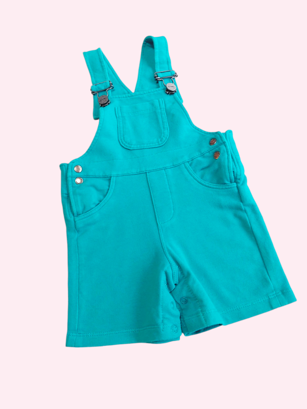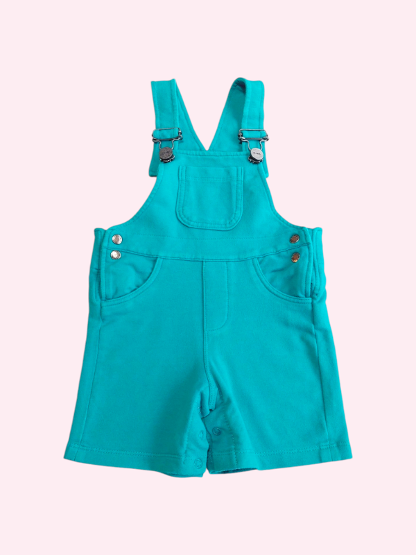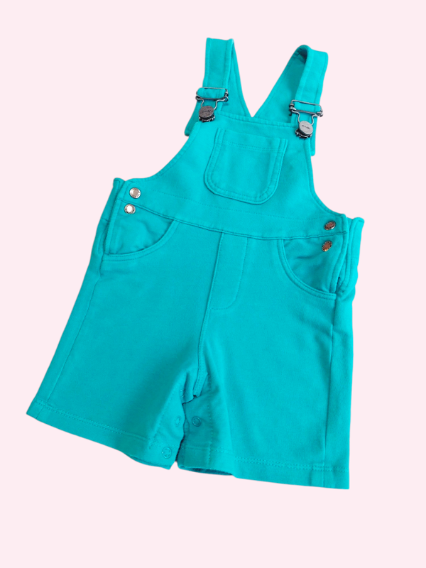 Jardinero corto de algodón turquesa elastizado Cheeky 6/9 meses