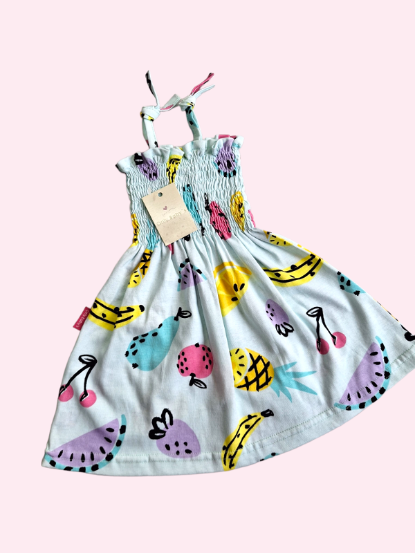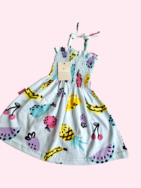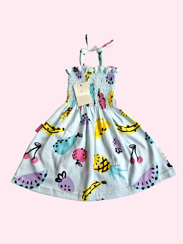Musculosa con frunce celeste y frutas Only Babys 6 meses NUEVO