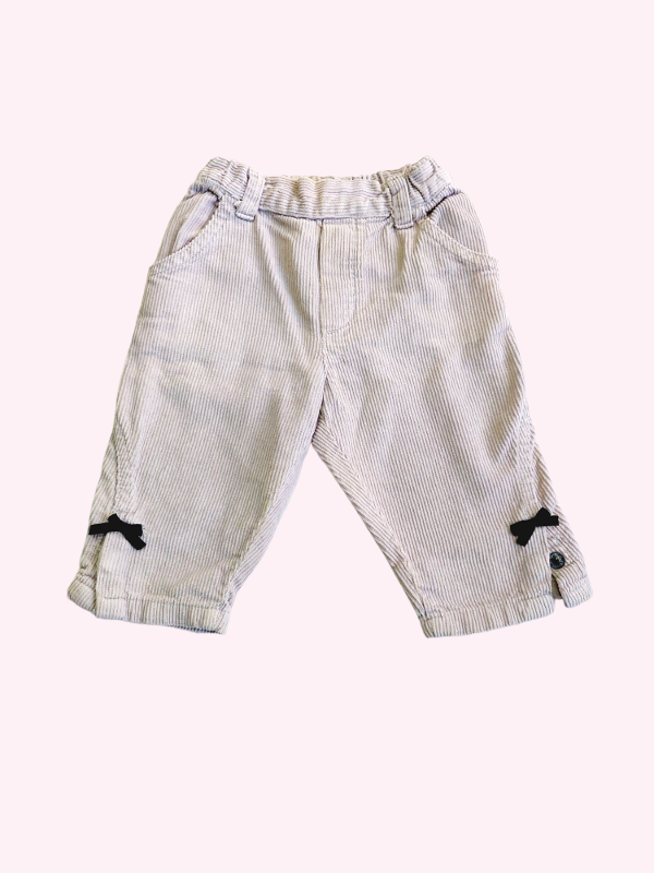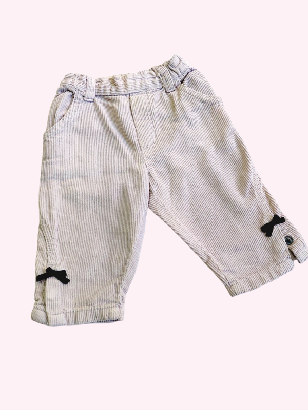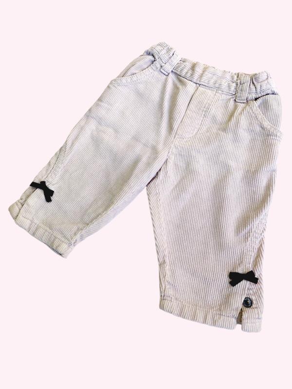 Pantalón ancho de corderoy beige con moños negros Cheeky 6/9 meses