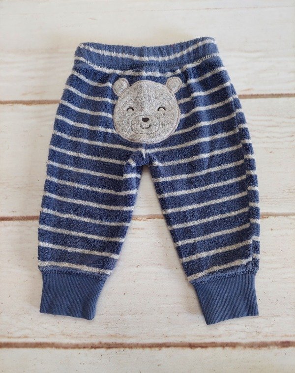Pantalón azul rayado con osito atrás tipo toalla Carters 6 meses