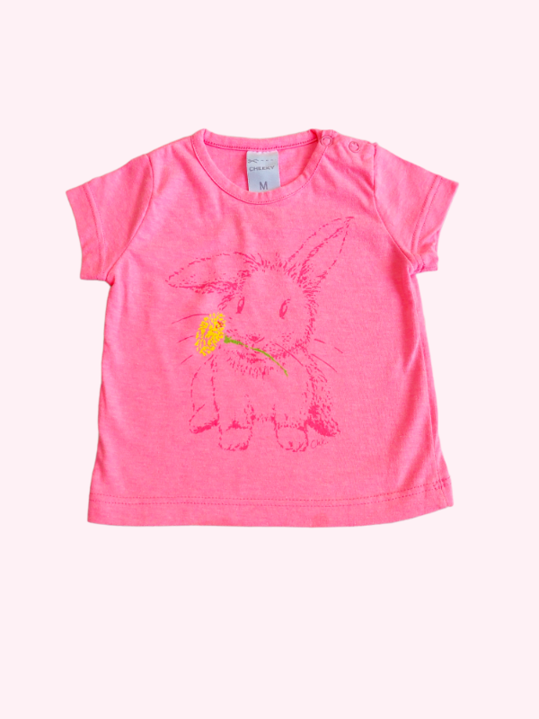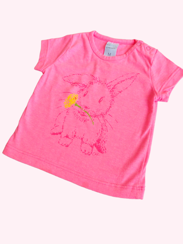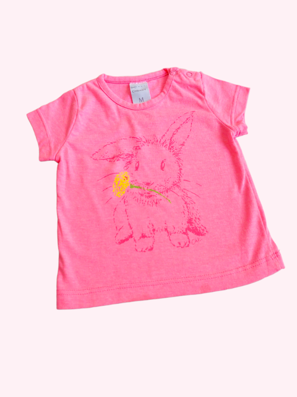 Remera manga corta fucsia con conejo Cheeky 6/9 meses