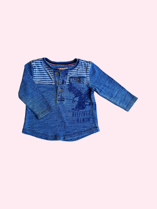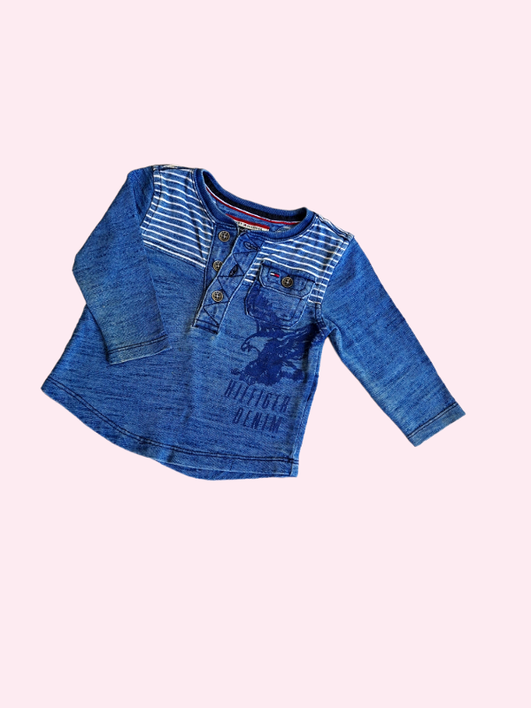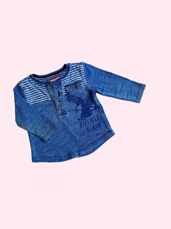 Remera manga larga azul jaspeado con rayas y botones Tommy 6/9 meses