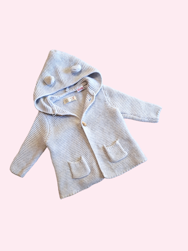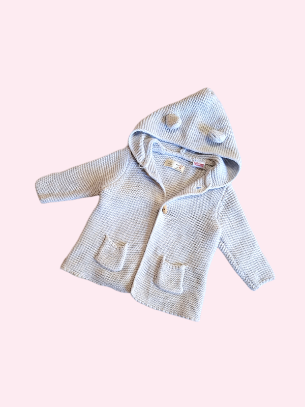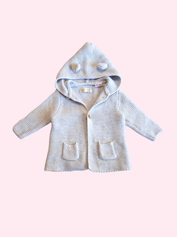 Saco tejido gris claro con capucha y orejitas Zara 6/9 meses