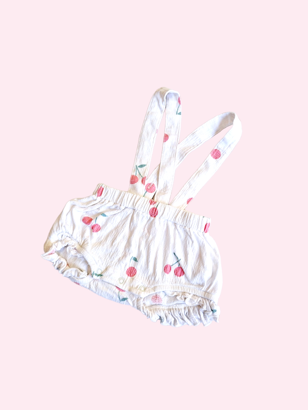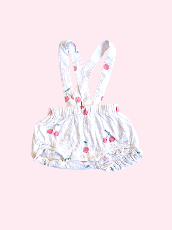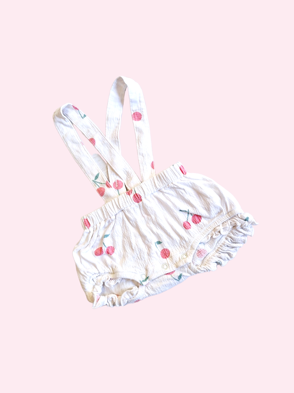 Short pañalero con tiradores blanco con cerezas Cheeky 6/9 meses