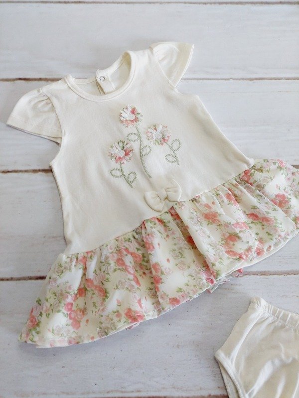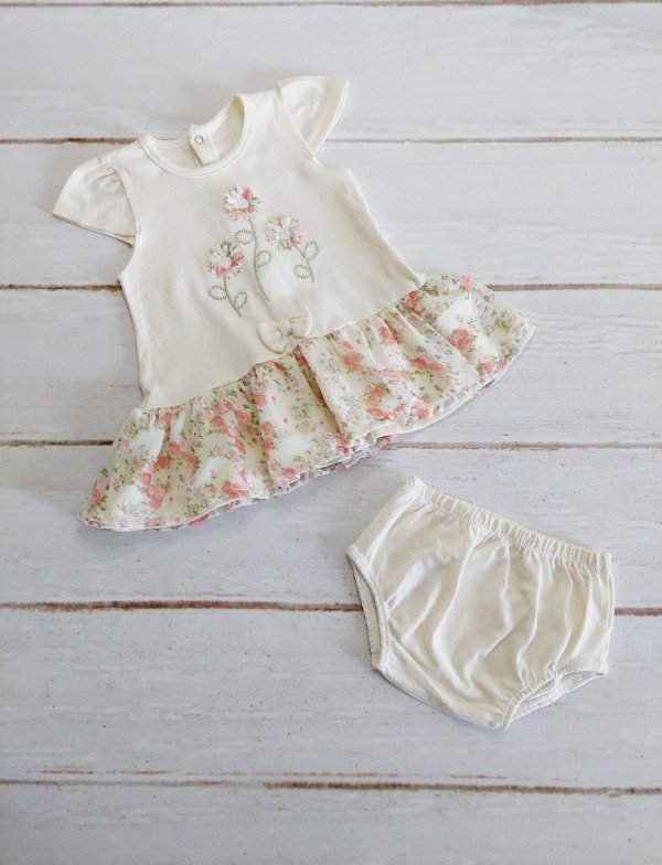 Vestido color crema con flores y bombacha CocoMiel 6 meses