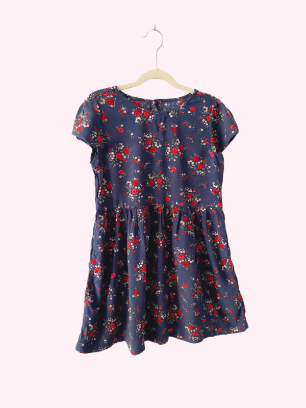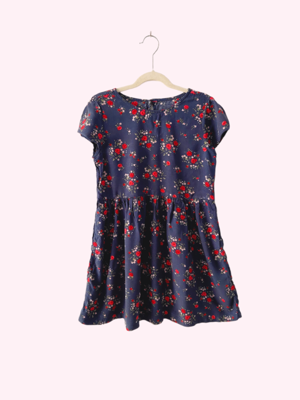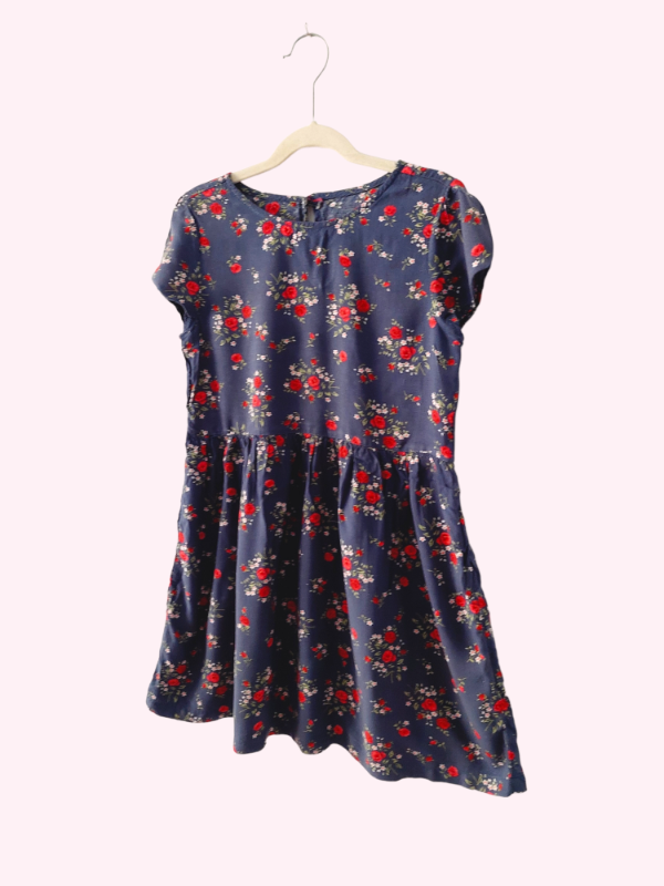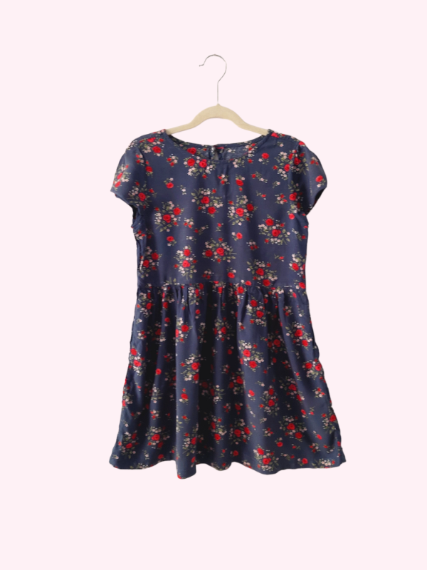 Vestido tipo fibrana azul con flores rojas Cheeky 8 años