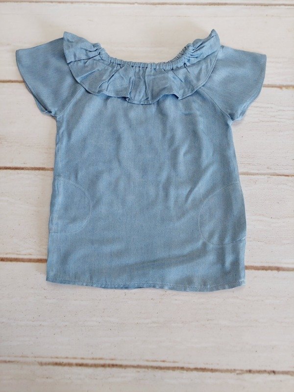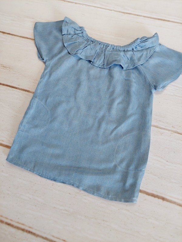 Camisola color jean con volados y frunce Pioppa 9/12 meses
