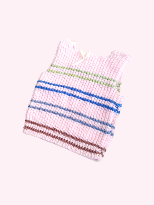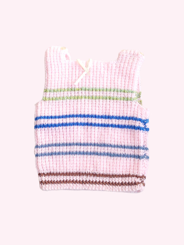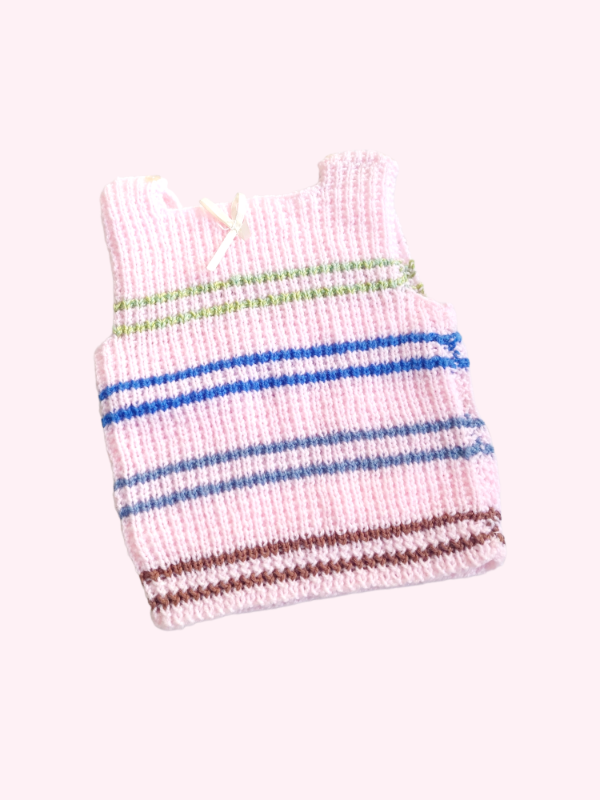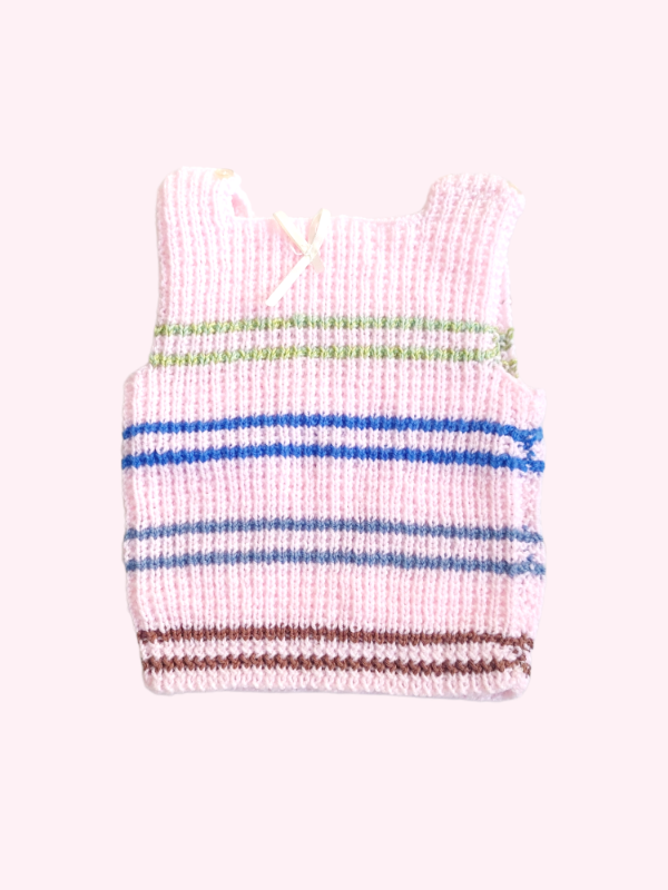 Chaleco tejido a mano rosa con rayas colores 9/12 meses
