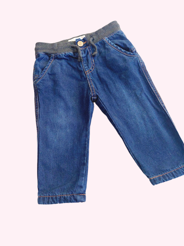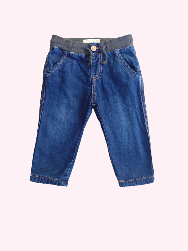 Jean azul oscuro con cintura elastica gris Zara 9/12 meses