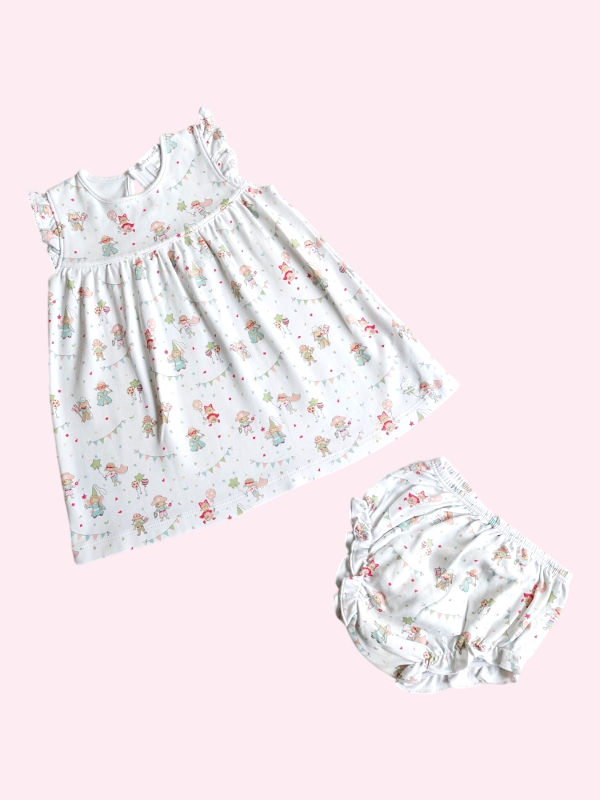 Solero de algodón con bombachudo blanco con dibujos Baby Cottons 9 meses